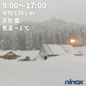 | 滑走状況 | 全面可能[◎] | 天気 | 雪 | 気温 | -9℃ | 雪質 | 乾雪 | 積雪 | 210cm |