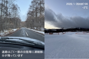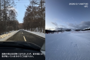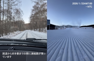 | 滑走状況 | 大部分可[○] | 天気 | 快晴 | 気温 | -8℃ | 雪質 | 人工雪 | 積雪 | 90cm |