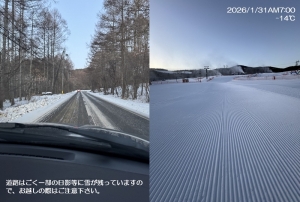 | 滑走状況 | 大部分可[○] | 天気 | 晴 | 気温 | -6℃ | 雪質 | 人工雪 | 積雪 | 70cm |