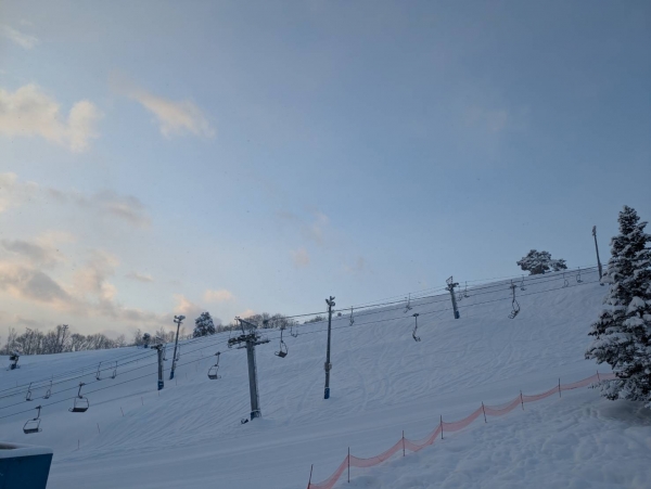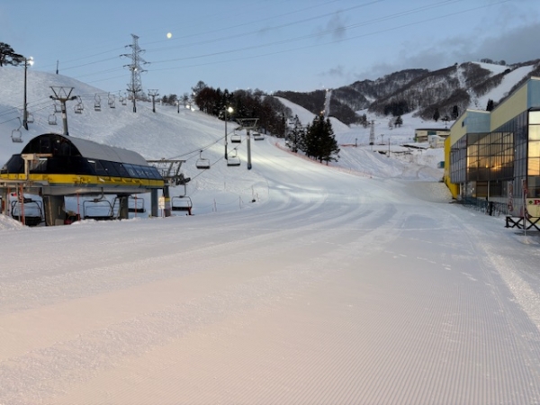 平日なので空いていました。 雪が固くガンガン滑れた。