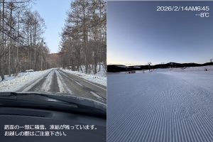 | 滑走状態 | 全面可能[◎] | 天気 | 晴 | 気温 | -3℃ | 雪質 | 人工雪 | 積雪 | 110cm |